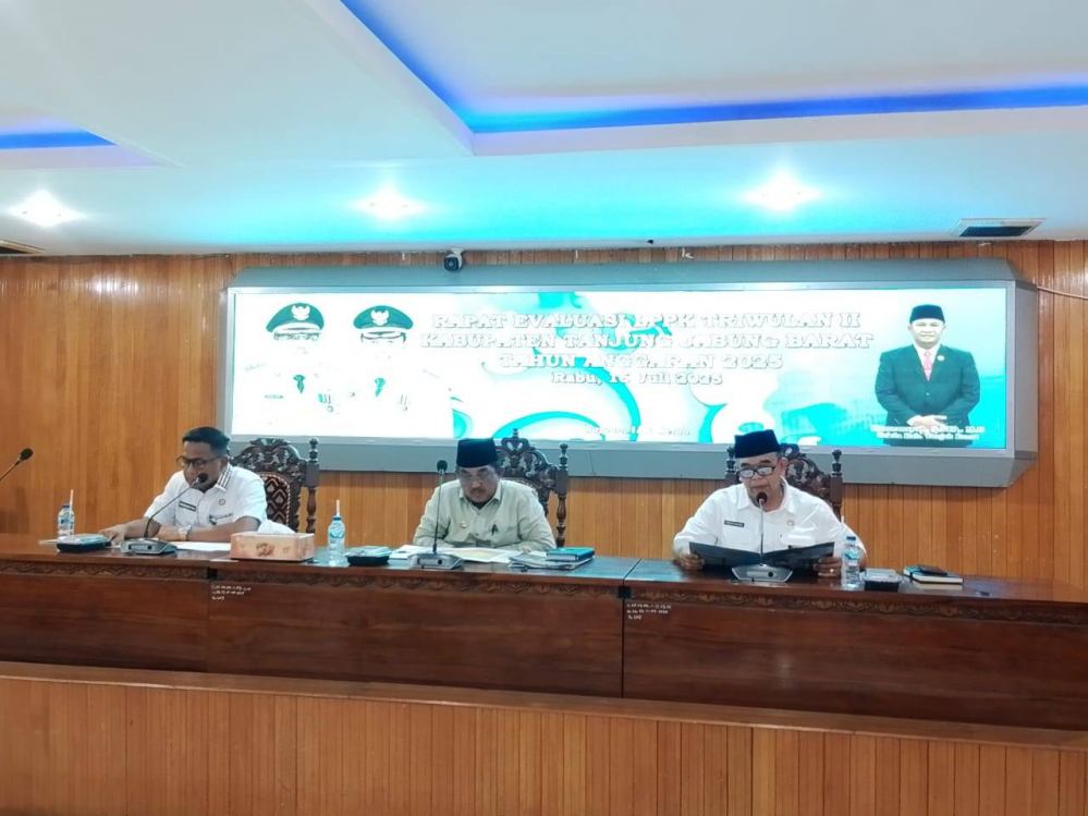 Bupati Tanjung Jabung Barat Drs. H. Anwar Sadat, M.Ag memimpin Rapat Evaluasi Laporan Pelaksanaan Program Kerja (LPPK) Organisasi Perangkat Daerah (OPD) Triwulan II Tahun Anggaran 2025, bertempat di Ruang Pola Utama Kantor Bupati, Rabu (16/7).
