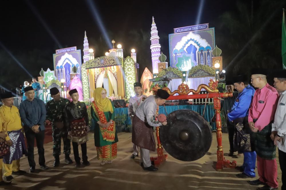 Dalam sambutannya, Wabup Katamso menyampaikan apresiasi dan ucapan terima kasih kepada seluruh panitia pelaksana, pemerintah kecamatan, serta desa-desa se-Kecamatan Tebing Tinggi atas terselenggaranya acara ini dengan baik dan meriah. “Terlaksananya kegiatan ini menandakan adanya pembinaan kehidupan beragama di Kecamatan Tebing Tinggi. Bahkan, apa yang kita saksikan malam ini sudah seperti MTQ tingkat kabupaten,” ujar Wabup Katamso.